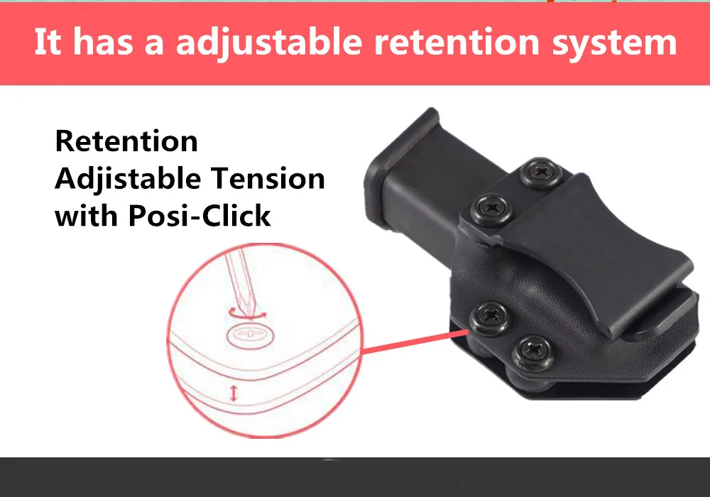 Ele também tem dois parafusos tensionada por cilindros de borracha para micro ajuste de retenção de regulação. Ele pode deixar o carregador mais fraco ou mais ligado ao carregador de titular, como os desejos do usuário.